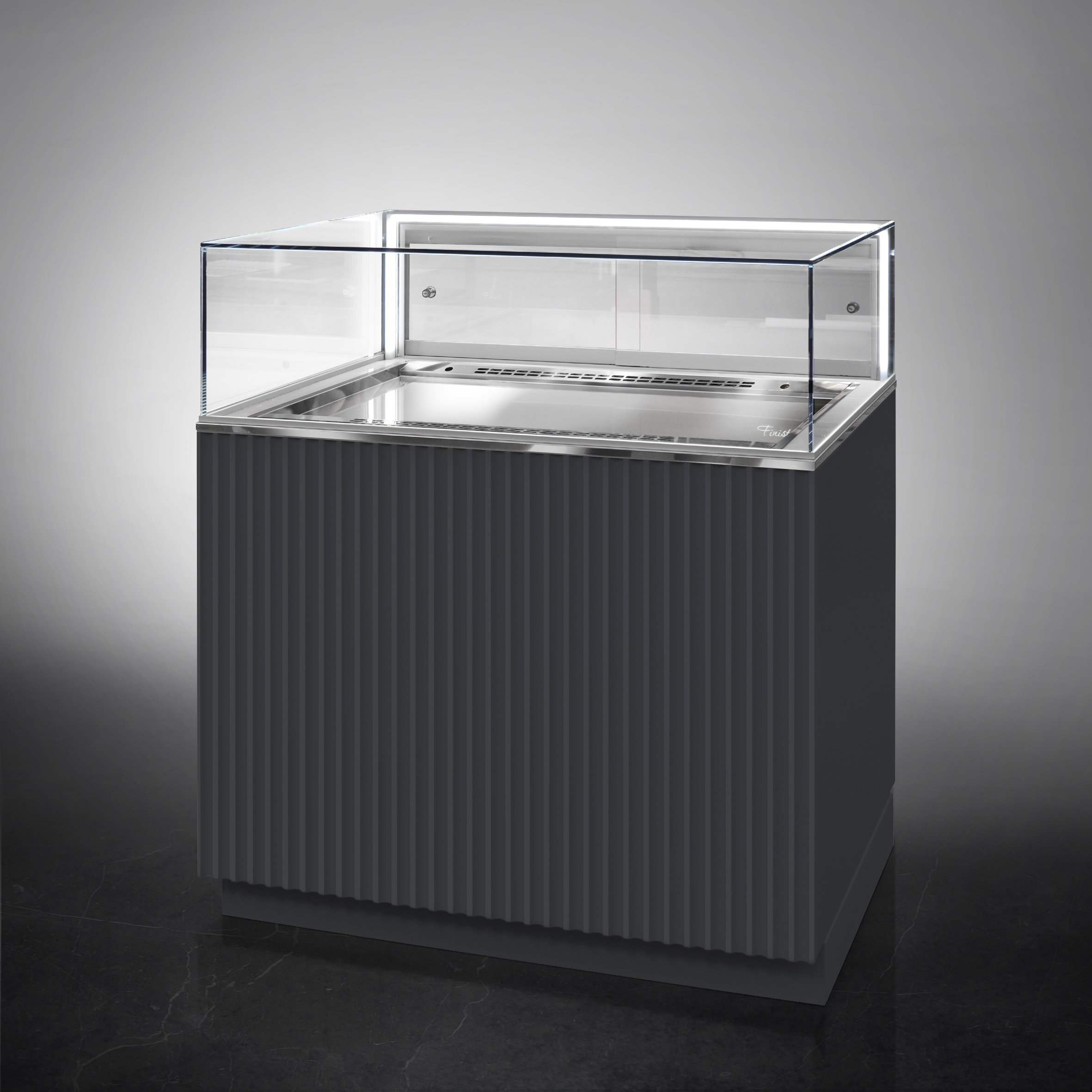 Холодильная витрина Finist GLASSIER LUX GL812-13/55/5 используется для демонстрационной выкладки, охлаждения и хранения кондитерских и хлебобулочных изделий на предприятиях общественного питания и торговли. Модель оснащена микропроцессорным блоком, автоматической оттайкой, цоколем, светодиодной подсветкой, стеклянной полкой и удобными дверцами купе. Материал фронтальных и боковых панелей облицовки - МДФ панели, материал купола - просветленное стекло, материал дна - высококачественная нержавеющая сталь.