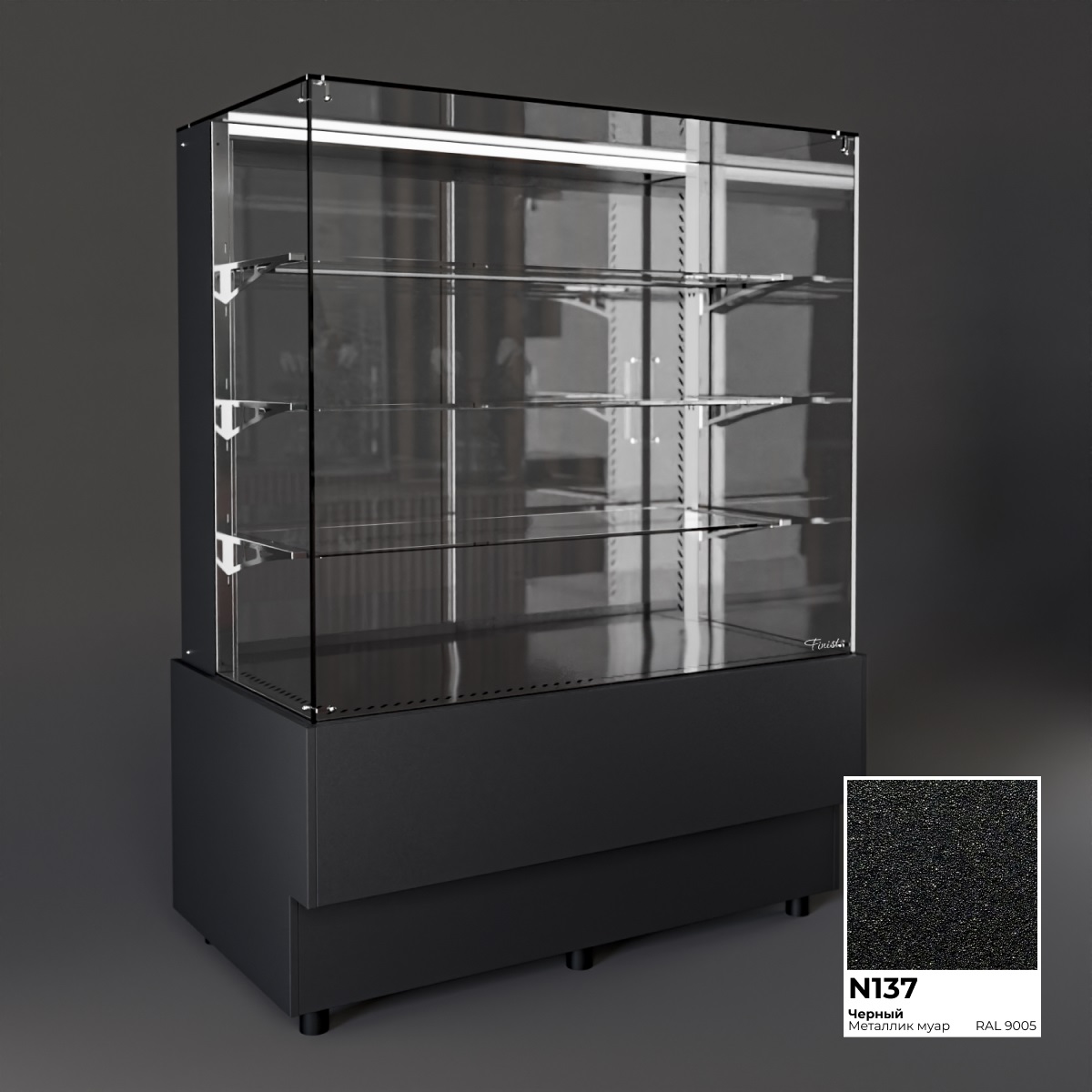 Холодильная витрина Finist AIR A-14-6-163 используется для демонстрационной выкладки, охлаждения и хранения кондитерских и хлебобулочных изделий на предприятиях общественного питания и торговли. Модель оснащена микропроцессорным блоком, автоматической оттайкой, светодиодной подсветкой каждой полки, 3 стеклянными полками и удобными дверцами купе. Материал цельнозаливного корпуса - окрашенная сталь, материал купола и полок - просветленное стекло, материал дна - зеркальная нержавеющая сталь.