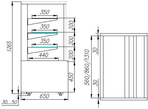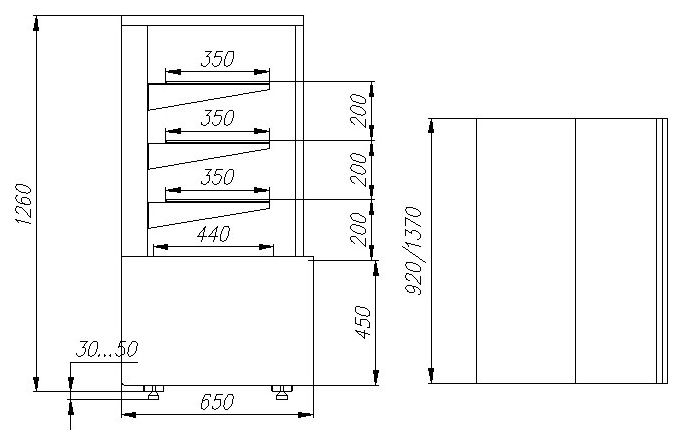 Кондитерская витрина Carboma KC70 VM 1,3-1 Light Техно используется на предприятиях общественного питания и торговли для демонстрации, охлаждения и кратковременного хранения тортов, пирожных и других кондитерских изделий. Модель оснащена 4-х сторонним остеклением со стеклопакетом, 3 охлаждаемыми стеклянными полками и регулируемыми ножками высотой от 30 до 50 мм. Корпус выполнен из окрашенной стали с ППУ-изоляцией, раздвижные задние створки - из оргстекла.