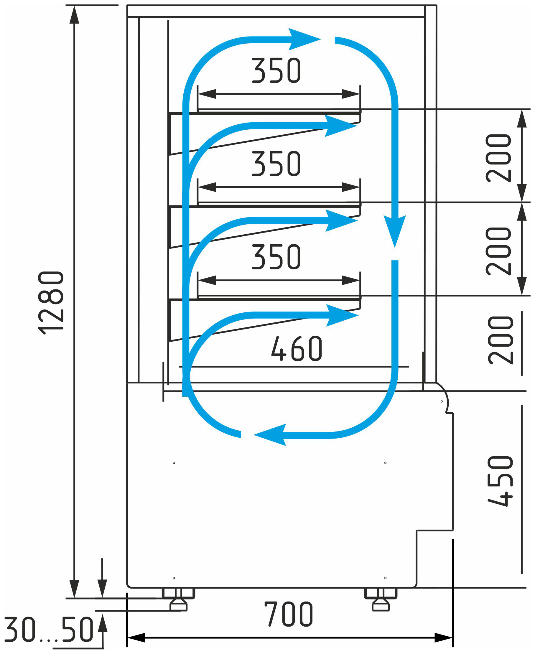 Кондитерская витрина Carboma KC70 VV 0,9-1 Standart используется на предприятиях общественного питания и торговли для демонстрации, охлаждения и кратковременного хранения тортов, десертов из сливок, пирожных и других кондитерских изделий. Модель оснащена 4-х сторонним остеклением со стеклопакетом, 3 охлаждаемыми стеклянными полками и регулируемыми ножками высотой от 30 до 50 мм. Корпус выполнен из окрашенной стали с ППУ-изоляцией, раздвижные задние створки на роликах - из стеклопакета.