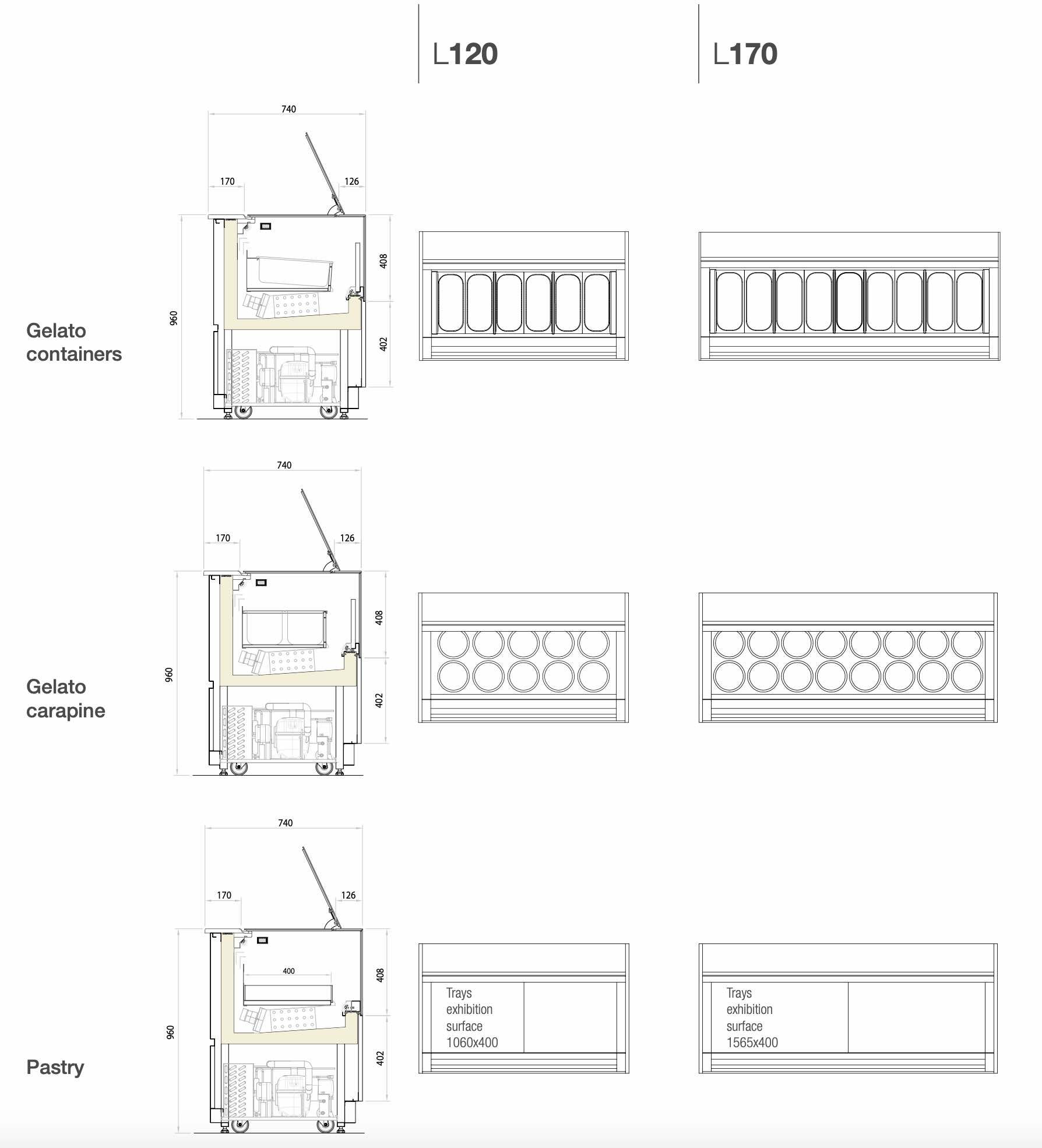 Благодаря инновационным технологиям размеры витрины сокращены до минимума: ISA ONESHOW FREE имеет в глубину всего лишь 720 мм. Благодаря этому она идеально подходит для установки в действующих заведениях. Витрина ISA ONESHOW FREE доступна также в версии для мороженого джелато, кондитерских изделий и шоколада.