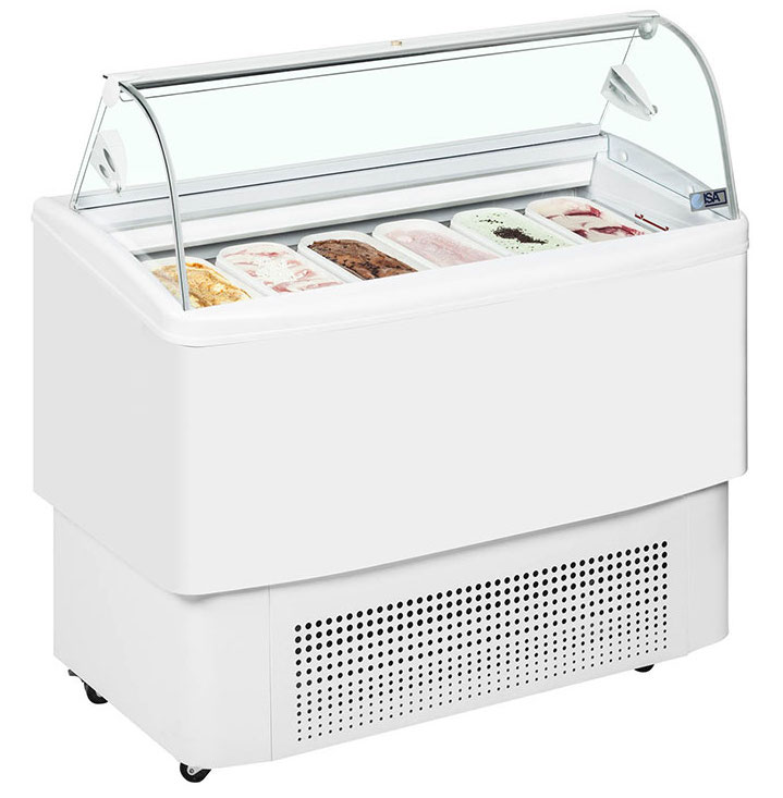 Витрина для мороженого ISA Fiji 4 используется на предприятиях общественного питания и торговли для демонстрации и хранения мороженого, сорбета и йогурта-мороженого. Каркас изготовлен из углеродистой стали, окрашенной порошковой краской, внутренняя и внешняя оболочки - из пластифицированной стали, поворотная крышка со стороны продавца - из метакрилата. Цельный корпус имеет изоляцию из пенополиуретана, вспененного углекислотой, без использования озоноразрушающих веществ.