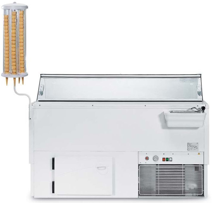 Витрина для мороженого ISA Isetta LX 7R используется на предприятиях общественного питания и торговли для демонстрации и хранения мороженого, сорбета и йогурта-мороженого. Каркас витрины изготовлен из углеродистой стали, окрашенной порошковой краской, внутренняя и внешние оболочки - из пластифицированной стали, поворотная крышка со стороны продавца - из метакрилата. Цельный корпус имеет изоляцию из пенополиуретана, вспененного углекислотой, без использования озоноразрушающих веществ.