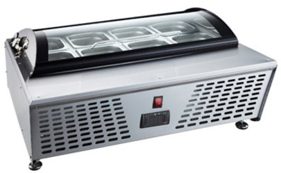 Витрина для мороженого Koreco RTD67L используется на предприятиях общественного питания и торговли для демонстрации и хранения мороженого, сорбета и йогурт-мороженого. Корпус трапециевидного сечения, зауженный к низу, выполнен из нержавеющей стали, крышка - из стекла.