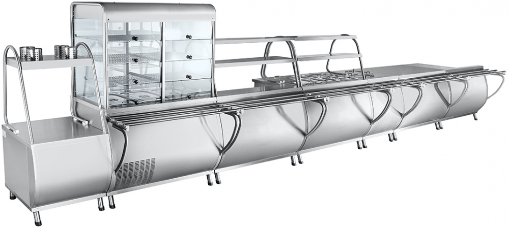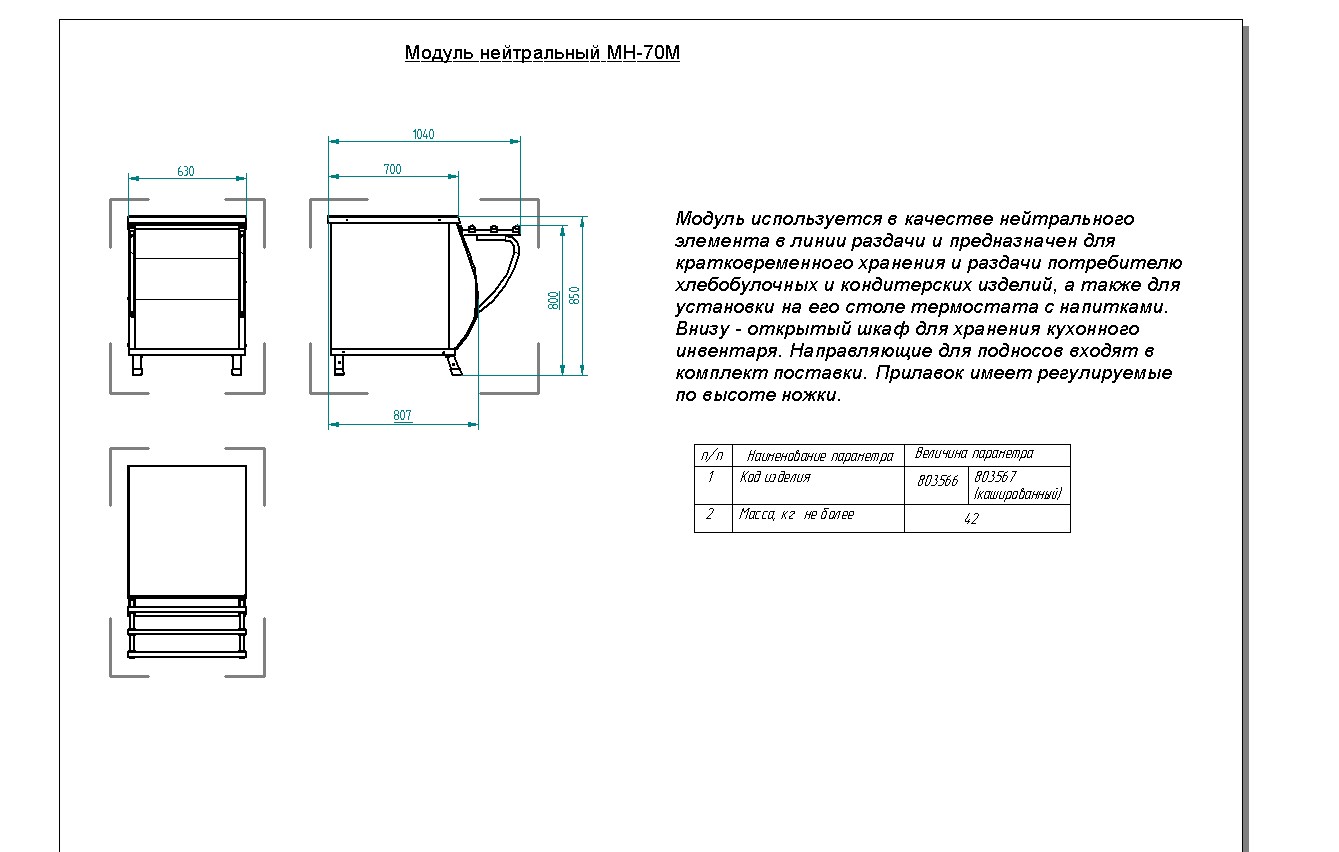 Нейтральный модуль​ Abat МН-70М предназначен для выкладки хлебобулочных, кондитерских изделий, посуды и столовых приборов в составе линий раздач на предприятиях общественного питания и торговли.
