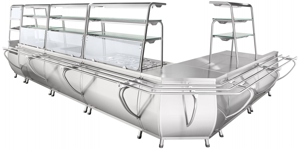 - Двойная полка над мармитом с подсветкой для выкладки блюд