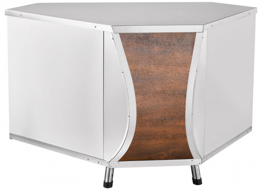 Конструкция выполнена из металла, кашированного под дерево.