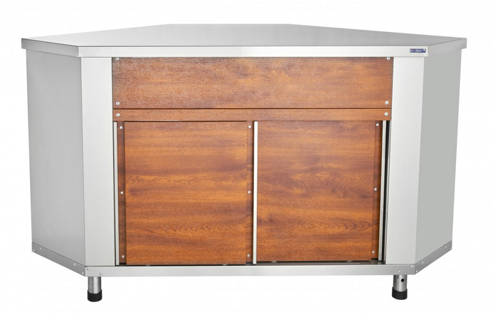 Поворотный модуль​ Abat МП-90Т-01 предназначен для выкладки хлебобулочных, кондитерских изделий, посуды и столовых приборов в составе линий раздач на предприятиях общественного питания и торговли.