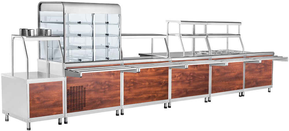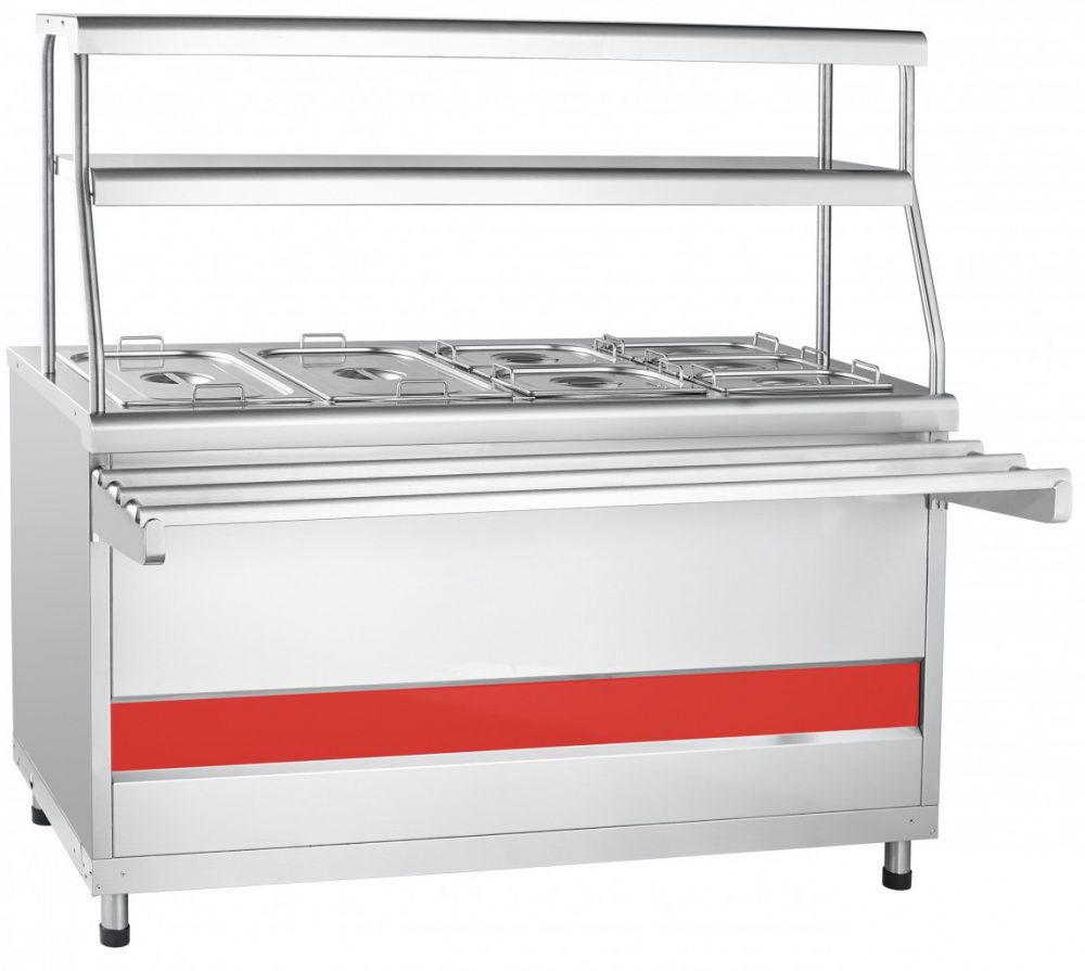 - Двойная полка над мармитом с подсветкой для выкладки блюд