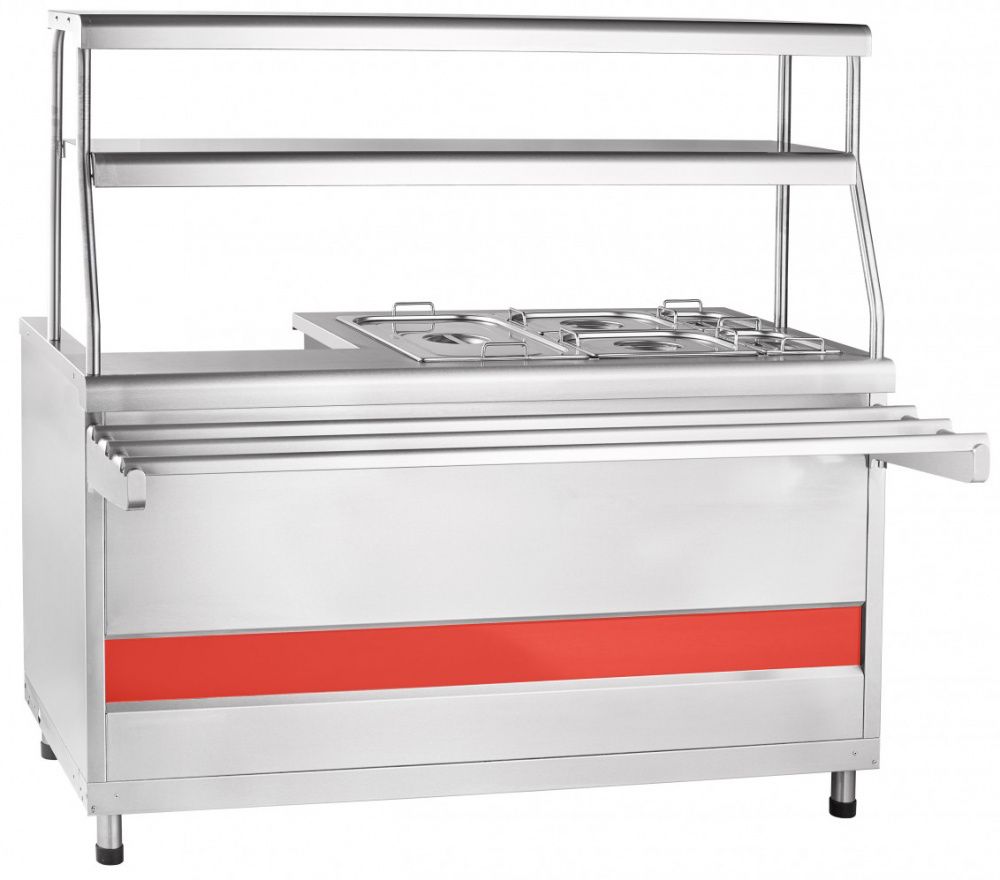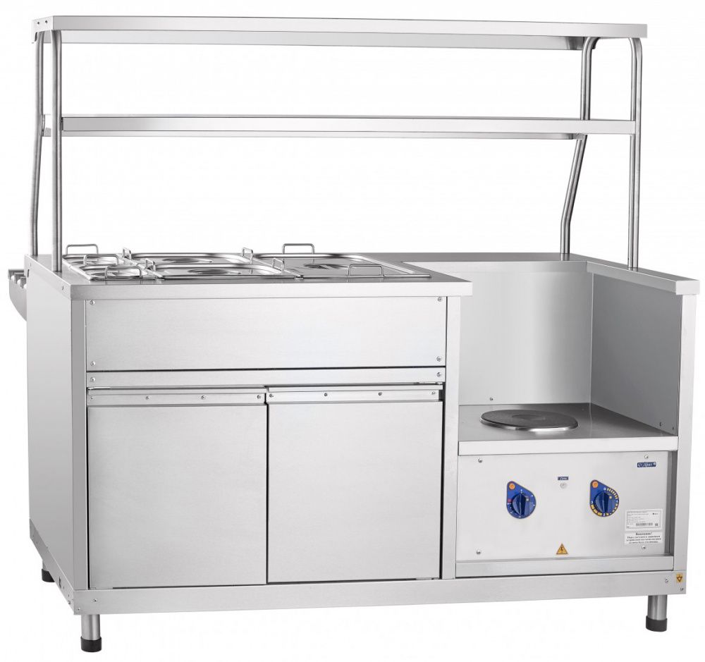 - Двойная полка над мармитом с подсветкой для выкладки блюд