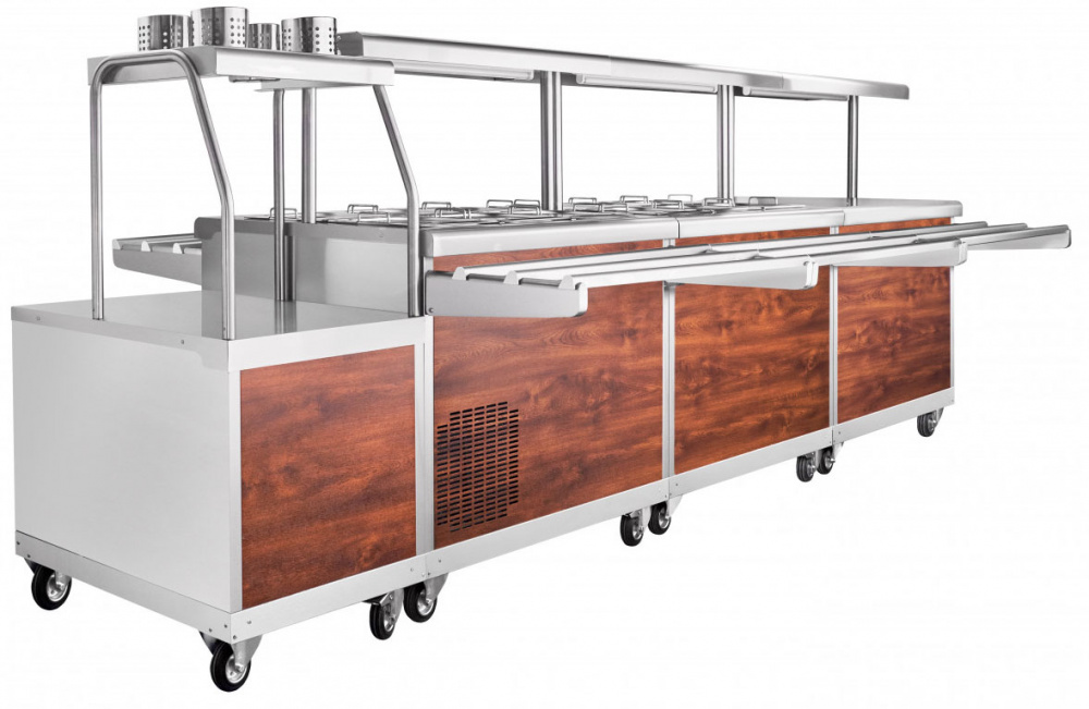 Прилавок-витринаb Abat ПВВ(Н)-70ПМ-01-НШ предназначен для демонстрации, охлаждения, кратковременного хранения блюд, холодных закусок и напитков в составе линий раздач на предприятиях общественного питания и торговли. Модель оснащена колесами со стопорным механизмом.