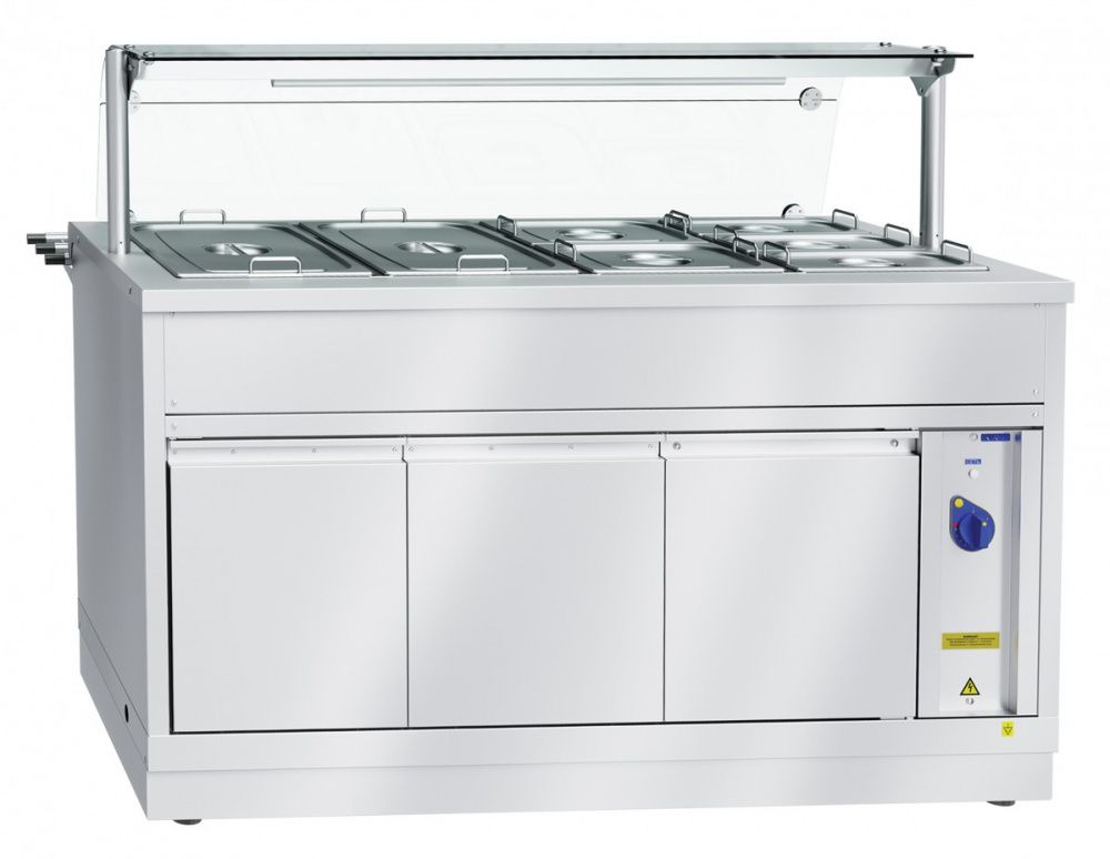 Мармит Abat ЭМК-70Х-01 предназначен для демонстрации, кратковременного хранения и поддержания в горячем состоянии первых и вторых блюд в составе линий раздач на предприятиях общественного питания и торговли. Модель оснащена 1 терморегулятором, 3 ПЭНами, 1 стеклянной полкой и LED-лампой освещения. Облицовки, ванна и столешница выполнены из нержавеющей стали.