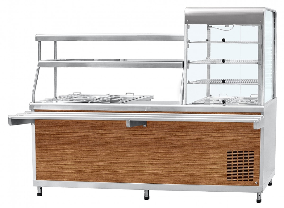 • Двойная полка над мармитом с подсветкой для выкладки блюд
