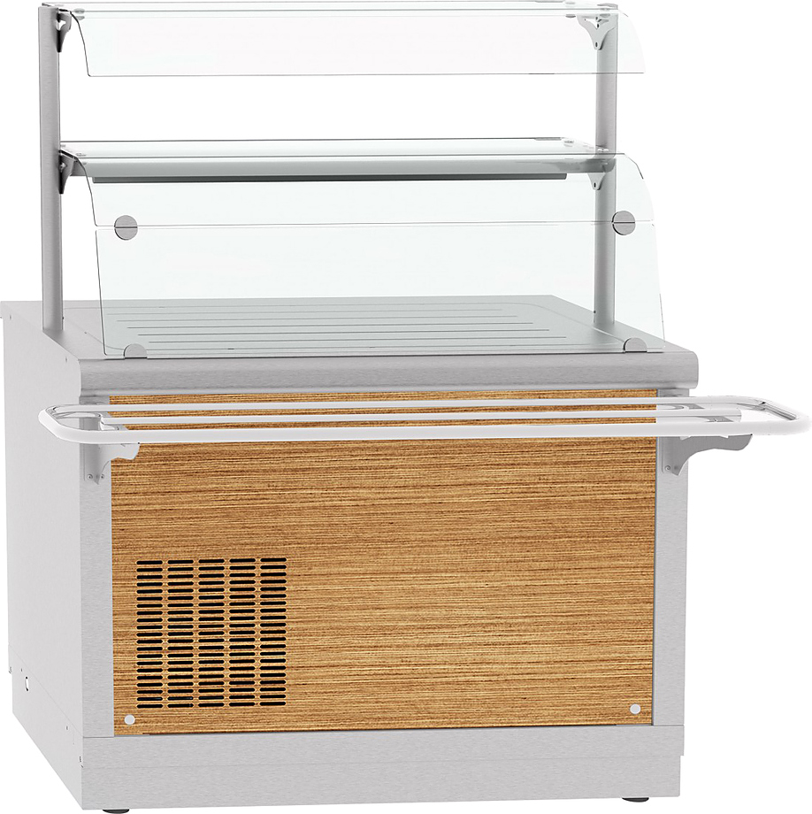 Прилавок Abat ПВВ(Н)-70Х-06-НШ предназначен для демонстрационной выкладки, кратковременного хранения и охлаждения различных блюд в составе линий раздач HOT-LINE на предприятиях общественного питания и торговли. Модель с охлаждаемой столешницей, 2 полками, LED-подсветкой, шкафом для хранения инвентаря и регулируемыми ножками. Материал съемных панелей - высококачественная нержавеющая сталь.