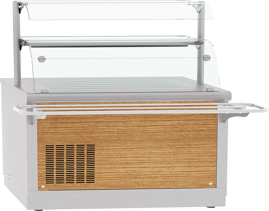 Прилавок Abat ПВВ(Н)-70Х-07-НШ предназначен для демонстрационной выкладки, кратковременного хранения и охлаждения различных блюд в составе линий раздач HOT-LINE на предприятиях общественного питания и торговли. Модель с охлаждаемой столешницей, 2 полками, LED-подсветкой, шкафом для хранения инвентаря и регулируемыми ножками. Материал съемных панелей - высококачественная нержавеющая сталь.
