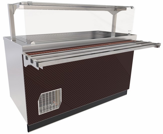 Прилавок-витрина Abat ПВВ(Н)-70Е-05-НШ используется для демонстрационной выкладки, охлаждения, кратковременного хранения закусок, третьих блюд и напитков в составе линий раздач на предприятиях общественного питания, торговли и пищевых производствах. Модель оснащена охлаждаемой поверхностью, со светодиодной подсветкой, полкой, нейтральным шкафом для хранения кухонного инвентаря и регулируемыми по высоте ножками.