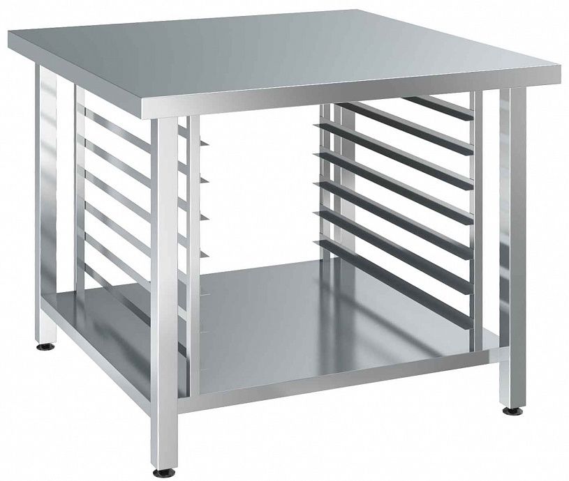 Подставка для пароконвектомата КАМИК Пд-П-341905 используется совместно с конвекционными печами UNOX серии XB и XEBC на предприятиях общественного питания и торговли. Столешница выполнена из нержавещей стали AISI 430. Сварной каркас из нержавеющей стали AISI 430 (профиль труба 40х40 мм). Подставка имеет 5 уровней направляющих под противни 600х400 мм.