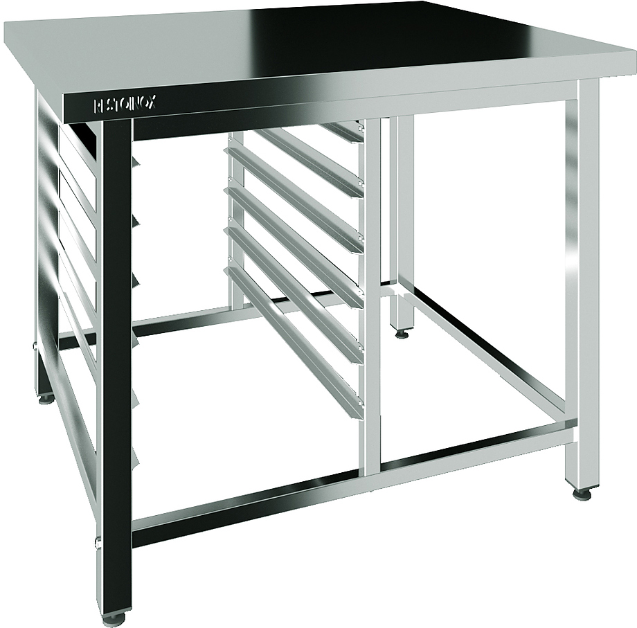 Подставка Restoinox ППКР-1-87/75 предназначается для установки пароконвектоматов Tecnoeka EKF на предприятиях общественного питания, торговли и пищевых производствах. Опоры ножек регулируются по высоте. Материал разборного каркаса - труба из нержавеющей стали AISI 430 (40x40 мм), материал столешницы и направляющих - нержавеющая сталь AISI 430.