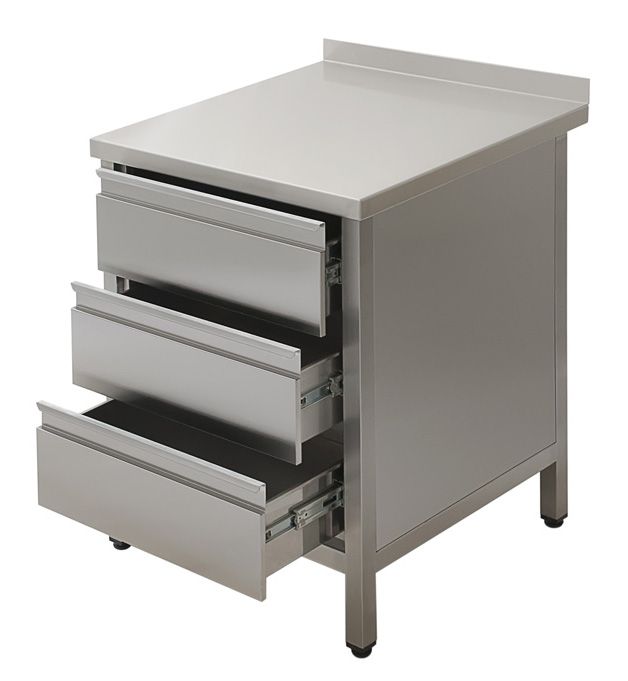 Стол производственный закрытый Simeco СЗЕ0507БЯ используется на предприятиях общественного питания и торговли для приготовления различных блюд, а так же для хранения посуды, сыпучих продуктов и специй. Модель закрыта с трех сторон. Имеет 3 выдвижных ящика из нержавеющей стали. Каркас стола выполнен из нержавеющей стали AISI 430, столешница - из нержавеющей стали AISI 430. Ножки - труба 40х40 мм.