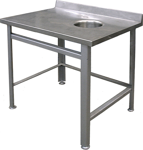 Стол для сбора отходов Hessen СППО 9/6 используется на предприятиях пищевой промышленности, общественного питания и торговли как для работы с продуктами питания, так и для хранения на нем посуды и кухонного инвентаря. Стол оснащен отверстием для сбора отходов, расположенным справа. Изделие произведено с использованием программы Technology without Injuries - комплекса технологических решений, направленных на уменьшение травмоопасности для персонала, работающего на оборудовании. Каркас выполнен из углеродистой стали, покрытой полимерной краской, столешница - из нержавеющей стали AISI 430.
