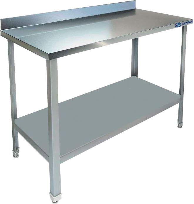 Производственный стол KAYMAN СП-242/1407 используется на предприятиях общественного питания и торговли для раскатки теста и обработки ингредиентов для приготовления блюд, а также как дополнительное место для установки и хранения кухонных приборов, инвентаря и сухих продуктов. Каркас выполнен из нержавеющего уголка AISI 430 40х40 мм, столешница - из нержавеющей стали AISI 430 толщиной 0,8 мм, столешница усилена листом ЛДСП толщиной 16 мм.