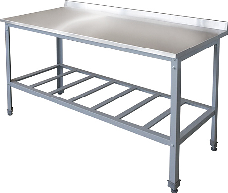 Производственный стол ITERMA СРБО-Э-18/7 используется на предприятиях общественного питания и торговли для разделки и обработки пищевых продуктов, а также для расстановки и хранения посуды и кухонного инвентаря. Модель оснащена ножками, регулирующимися по высоте. Каркас выполнен из оцинкованной стали, столешница - из нержавеющей стали AISI 430 толщиной 0,5 мм с усилением ЛДСП.