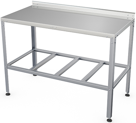 Производственный стол ATESY СР-Б-1-950.600-02 серии Бюджет предназначен для раскатки теста и обработки ингредиентов на предприятиях общественного питания и торговли. Полка-решетка и каркас выполнены из оцинкованной стали толщиной 1,2 мм, столешница - из нержавеющей стали AISI 430 толщиной 0,8 мм, ножки - из нержавеющей стали, опора ножек - из пластика.