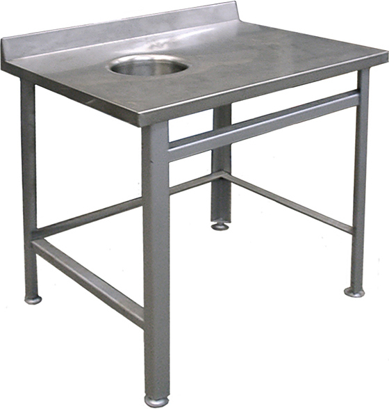 Стол для сбора отходов Hessen СППО 9/6 используется на предприятиях пищевой промышленности, общественного питания и торговли как для работы с продуктами питания, так и для хранения на нем посуды и кухонного инвентаря. Стол оснащен отверстием для сбора отходов, расположенным слева. Изделие произведено с использованием программы Technology without Injuries - комплекса технологических решений, направленных на уменьшение травмоопасности для персонала, работающего на оборудовании. Каркас выполнен из углеродистой стали, покрытой полимерной краской, столешница - из нержавеющей стали AISI 430.