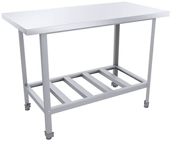 Производственный стол Пищевые Технологии Стандарт НК СРО-15/6СНК-М предназначен для обработки продуктов питания, раскатки теста и хранения кухонного инвентаря на предприятиях общественного питания и торговли. Модель оснащена регулируемыми по высоте ножками. Каркас выполнен из нержавеющего уголка, столешница - из нержавеющей стали AISI 430 с усилением из листа ЛДСП.