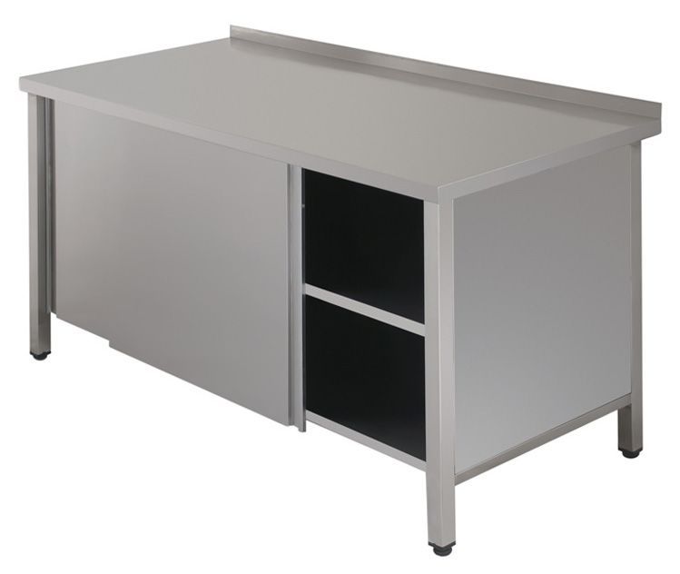 Simeco СЗE1107БК используется на предприятиях общественного питания и торговли для приготовления различных блюд, а так же для хранения посуды и сыпучих продуктов. Модель закрыта с трех сторон. Имеет двери-купе, сплошную полку из нержавеющей стали и борт высотой 40 мм. Каркас стола выполнен из нержавеющей стали AISI 430, столешница - из нержавеющей стали AISI 430. Ножки - труба 40х40 мм.