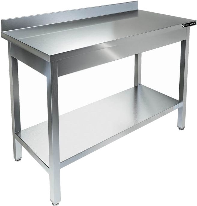 Производственный стол KAYMAN СП-222/0807 используется на предприятиях общественного питания и торговли для раскатки теста и обработки ингредиентов для приготовления блюд, а также как дополнительное место для установки и хранения кухонных приборов, инвентаря и сухих продуктов. Каркас выполнен из нержавеющей трубы AISI 430 40х40 мм, столешница - из нержавеющей стали AISI 430 толщиной 0,8 мм, усилена листом ЛДСП толщиной 16 мм.