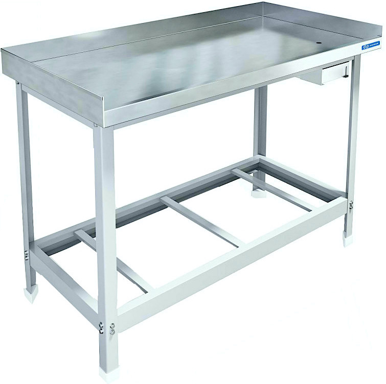 Мясной стол KAYMAN СП-555/1206 используется на предприятиях общественного питания и торговли для разделки и последующей обработки мяса и мясных полуфабрикатов. Модель оснащена 3 бортами. Столешница выполнена из нержавеющей стали AISI 430 и укреплена с внутренней стороны листом ламинированной древесно-стружечной плиты толщиной 16 мм, разборный каркас из оцинкованного уголка толщиной 1,5 мм.