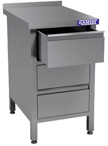Стол производственный КАМИК СБЗЯ-4753 используется на предприятиях общественного питания, торговли и пищевых производствах для приготовления широкого спектра блюд и обработки ингредиентов. Стол оснащен бортом и ящиками. Материал изготовления - нержавеющая сталь AISI 430.