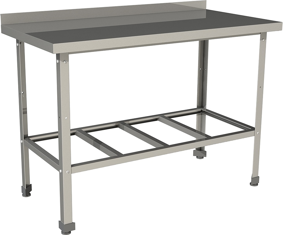 Производственный стол Restoinox СП-5/6-БР-ЭН серии 600 предназначен для обработки продуктов питания, раскатки теста, хранения кухонного инвентаря и оборудования на предприятиях общественного питания, торговли и пищевых производствах. Опоры ножек регулируются по высоте. Материал ножек - уголок из нержавеющей стали AISI 430 (40х40 мм), материал рабочей поверхности и решетки - нержавеющая сталь AISI 430.