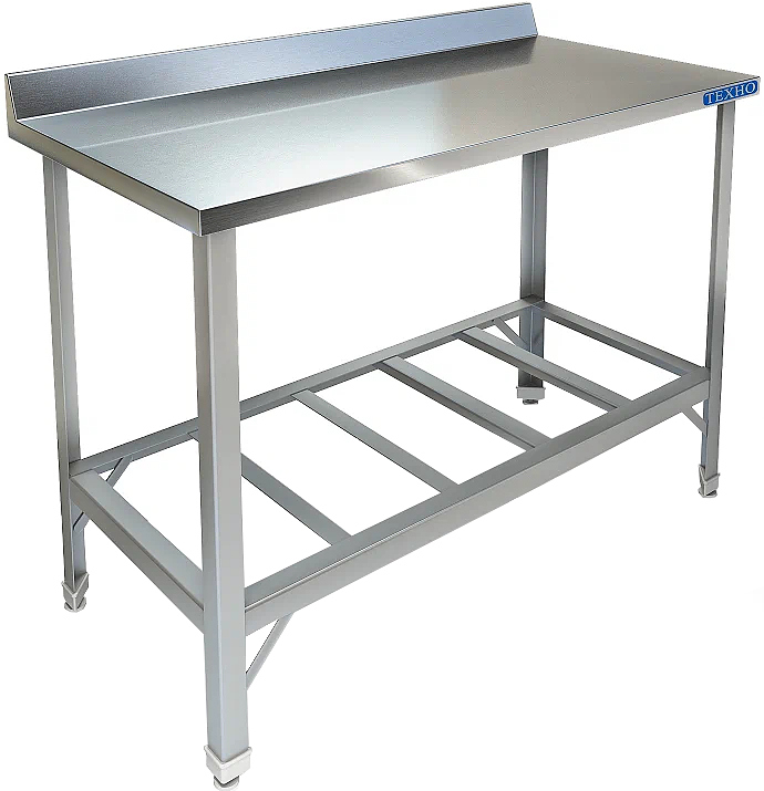 Производственный стол Техно-ТТ СПП-229/2008 предназначен для разделки и обработки пищевых продуктов, а также для расстановки и хранения посуды и кухонного инвентаря на предприятиях общественного питания, торговли и пищевых производствах. Модель оснащена обвязкой с 3 сторон и регулируемыми по высоте ножками, что позволяет компенсировать неровности пола. Материал разборного каркаса - труба (40x40 мм) из нержавеющей стали AISI 304, материал столешницы - нержавеющая сталь AISI 304, материал полки-решетки - нержавеющая сталь AISI 430.