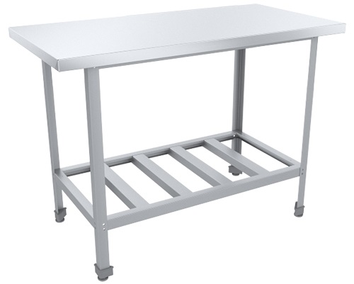 Производственный стол Пищевые Технологии Стандарт СРО-15/8СЦК предназначен для обработки продуктов питания, раскатки теста и хранения кухонного инвентаря на предприятиях общественного питания, торговли и пищевых производствах. Модель оснащена полкой-решеткой и регулируемыми опорами. Материал столешницы - высококачественная нержавеющая сталь AISI 430