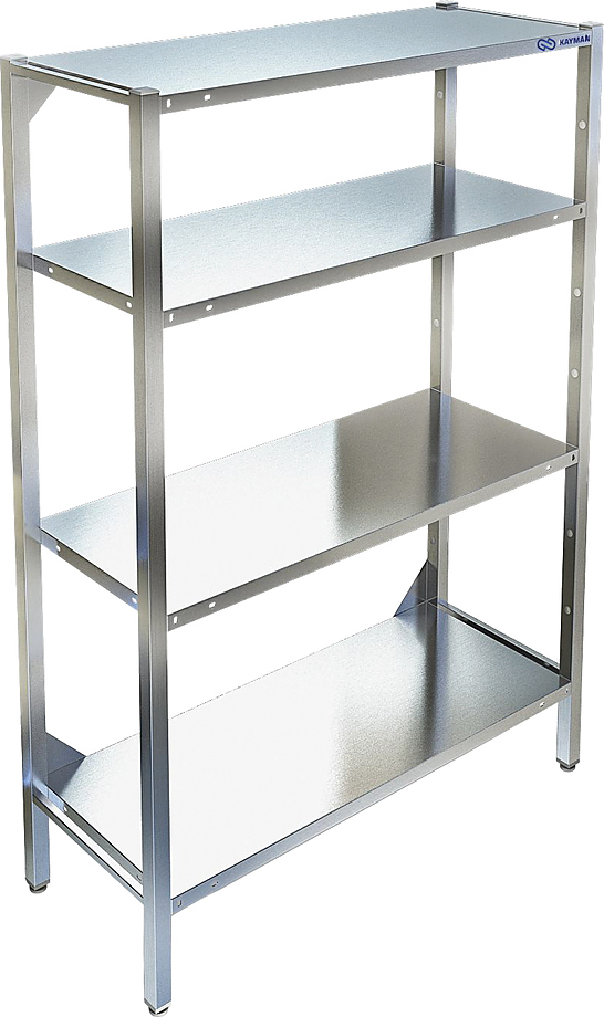 Кухонный стеллаж Техно-ТТ СТР-134/603 используется на предприятиях общественного питания, торговли и пищевых производствах для хранения посуды, кухонного инвентаря и продуктов. В модели предусмотрены регулируемые ножки и полки. Тип каркаса - разборный, полки - сплошные. Материал каркаса - нержавеющая сталь (труба 40х20 мм толщиной 1,2 мм), материал полок - нержавеющая сталь AISI 430 (толщина 0.8 мм).