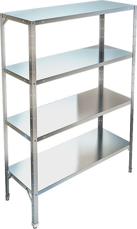 Кухонный стеллаж Техно-ТТ СТР-314/2004 используется на предприятиях общественного питания, торговли и пищевых производствах для хранения посуды, кухонного инвентаря и продуктов. В модели предусмотрены регулируемые ножки и полки. Тип каркаса - разборный, полки - сплошные. Материал каркаса - крашеный металл (уголок 40х40 мм толщиной 2 мм), материал полок - нержавеющая сталь AISI 430 (толщина 0.8 мм).
