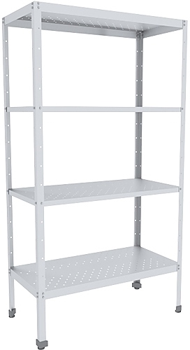 Стеллаж Пищевые Технологии СКК-15/6 СНК-П серии Стандарт используется на предприятиях общественного питания, торговли и пищевых производствах для хранения различной посуды, кухонного инвентаря и сухих продуктов. Ножки регулируются по высоте для компенсации неровности пола. Полки - перфорированные (толщина 0.8 мм), профиль ножек - уголок (38x38 мм, толщина 1.5 мм). Материал каркаса и полок - высококачественная нержавеющая сталь AISI 430.
