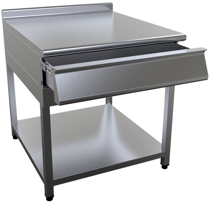 Открытый нейтральный модуль Кобор N7-6OB предназначен для использования в составе тепловой линии в качестве дополнительного места для раскатки теста, обработки ингредиентов для приготовления блюд, установки оборудования и приборов, хранения посуды и кухонных принадлежностей. Модуль оснащен выдвижным ящиком, сплошной полкой и регулируемыми по высоте ножками. Корпус выполнен из нержавеющей стали AISI 430, каркас - из профильной трубы 40х40 мм.