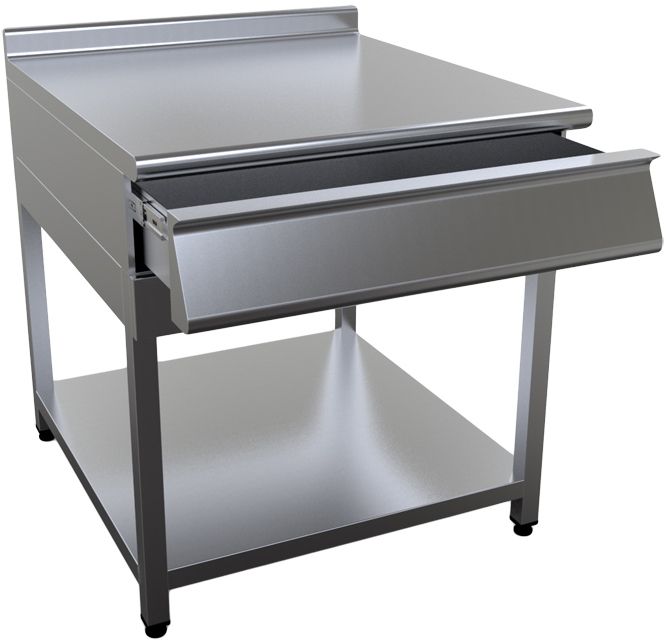 Открытый нейтральный модуль Кобор N7-8OB предназначен для использования в составе тепловой линии в качестве дополнительного места для раскатки теста, обработки ингредиентов для приготовления блюд, установки оборудования и приборов, хранения посуды и кухонных принадлежностей. Модуль оснащен выдвижным ящиком, сплошной полкой и регулируемыми по высоте ножками. Корпус выполнен из нержавеющей стали AISI 430, каркас - из профильной трубы 40х40 мм.