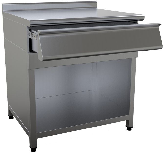 Полузакрытый нейтральный модуль Кобор N7-7CB предназначен для использования в составе тепловой линии в качестве дополнительного места для раскатки теста, обработки ингредиентов для приготовления блюд, установки оборудования и приборов, хранения продуктов, не требующих специального температурного режима, посуды и кухонных принадлежностей. Модуль оснащен выдвижным ящиком, сплошной полкой и регулируемыми по высоте ножками. Корпус выполнен из нержавеющей стали AISI 430, каркас - из профильной трубы 40х40 мм.