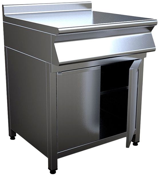 Закрытый нейтральный модуль Кобор N7-8E предназначен для использования в составе тепловой линии в качестве дополнительного места для раскатки теста, обработки ингредиентов для приготовления блюд, установки оборудования и приборов. Модуль оснащен сплошной полкой, распашными дверцами и регулируемыми по высоте ножками. Корпус выполнен из нержавеющей стали AISI 430, каркас - из профильной трубы 40х40 мм.