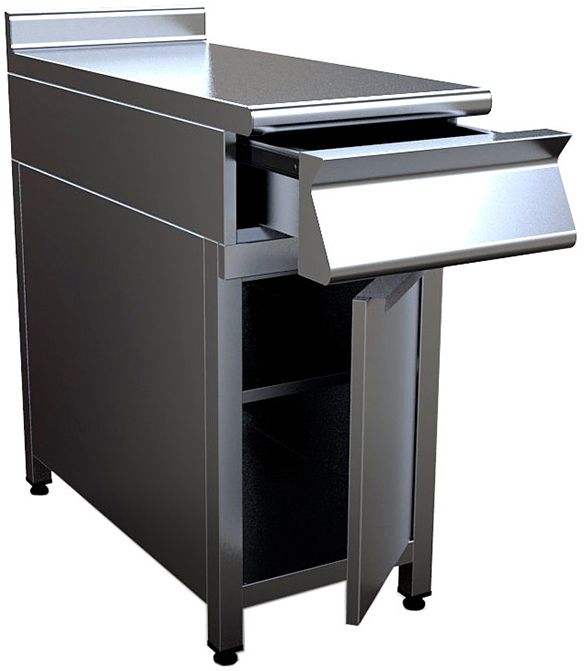 Закрытый нейтральный модуль Кобор N7-7EB предназначен для использования в составе тепловой линии в качестве дополнительного места для раскатки теста, обработки ингредиентов для приготовления блюд, установки оборудования и приборов. Модуль оснащен выдвижным ящиком, сплошной полкой, распашной дверцей и регулируемыми по высоте ножками. Корпус выполнен из нержавеющей стали AISI 430, каркас - из профильной трубы 40х40 мм.