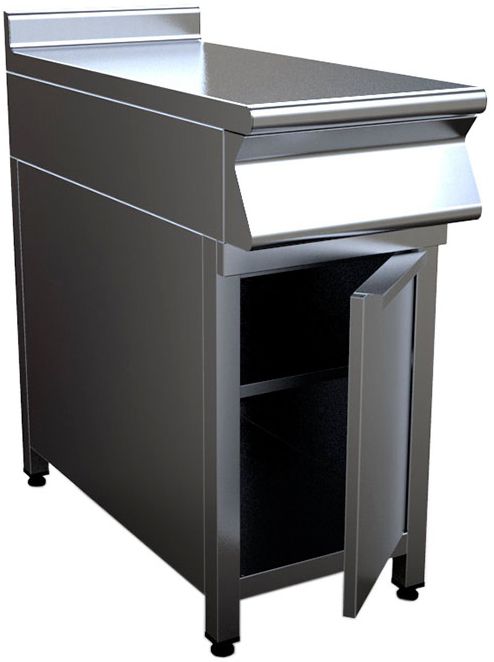 Закрытый нейтральный модуль Кобор N9-4E предназначен для использования в составе тепловой линии в качестве дополнительного места для раскатки теста, обработки ингредиентов для приготовления блюд, установки оборудования и приборов. Модуль оснащен сплошной полкой, распашной дверцей и регулируемыми по высоте ножками. Корпус выполнен из нержавеющей стали AISI 430, каркас - из профильной трубы 40х40 мм.
