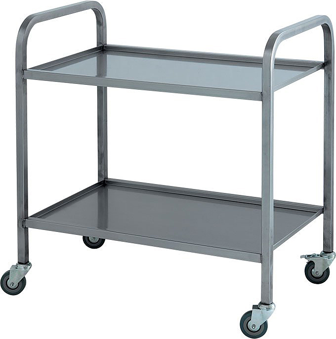 Сервировочная тележка ATESY ТС-Л-2-800.500.850-02 серии Люкс используется на предприятиях общественного питания для перемещения готовых блюд, напитков и посуды в зал приема пищи, а также для подачи грязной посуды из зала в моечное отделение. Модель оснащена 2 вместительными полками с герметичными бортиками. Полки выполнены из нержавеющей стали AISI 304, рамы - из нержавеющей трубы AISI 304 сечением 25х25 мм.
