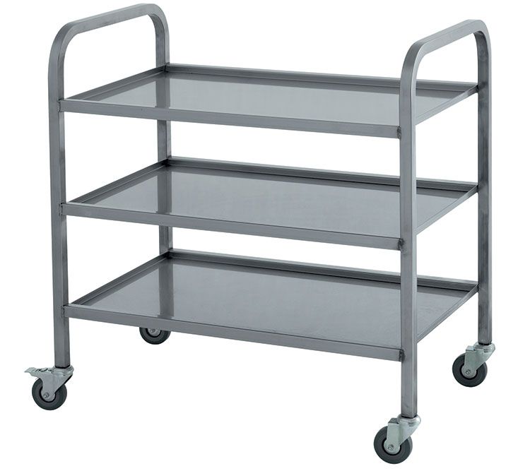Сервировочная тележка ATESY ТС-Л-3-850.530.900-02 серии Люкс используется на предприятиях общественного питания для перемещения готовых блюд, напитков и посуды в зал приема пищи, а также для подачи грязной посуды из зала в моечное отделение. Модель оснащена 3 вместительными полками с герметичными бортиками. Полки выполнены из нержавеющей стали AISI 304, рамы - из нержавеющей трубы AISI 304 сечением 25х25 мм.