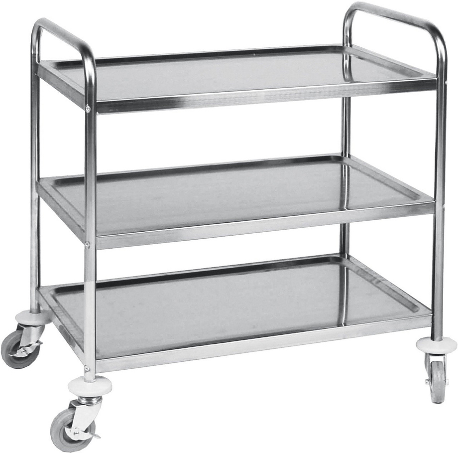 Тележка сервировочная Kocateq RP3S используется на предприятиях общественного питания, торговли и пищевых производствах для транспортировки инвентаря, посуды, продуктов, пищевых отходов и предметов сервировки. Модель оснащена полками, ножками с бамперами и поворотными колесами. Материал изделия - высококачественная нержавеющая сталь AISI 304.