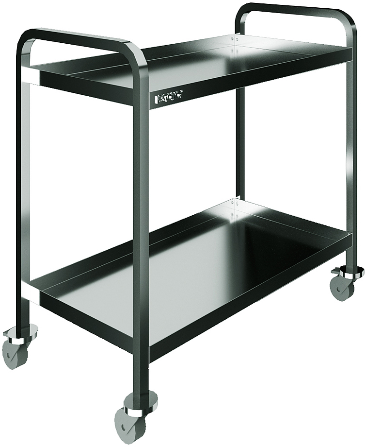 Тележка сервировочная Restoinox ТС-2-8/5 предназначается для перемещения готовых блюд и посуды на предприятиях общественного питания, торговли и пищевых производствах. Тележка установлена на поворотных колесах, 2 из которых оснащены стопорным механизмом. Количество полок - 2. Материал разборного каркаса - нержавеющая сталь AISI 430 (25х25 мм), материал полок - нержавеющая сталь AISI 430.
