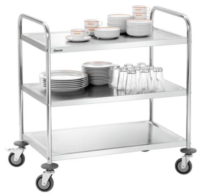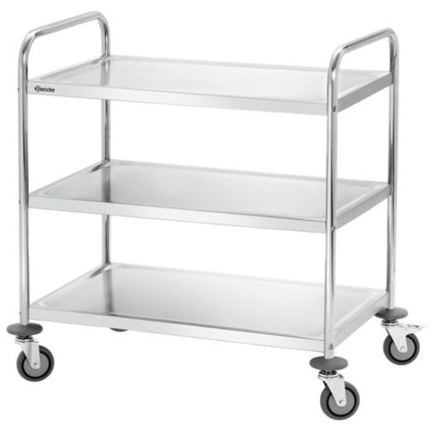 Тележка Bartscher TS301 используется на предприятиях общественного питания, торговли и пищевых производствах для сбора грязной посуды. Модель оснащена колесами, 2 из них с тормозами. Материал изделия - хромникелевая сталь (труба 25.8 мм).